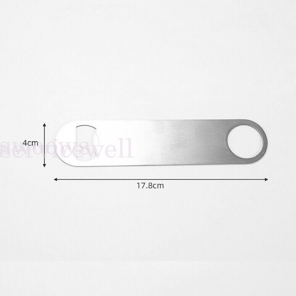 Brand New, High Quality Product! Premium grade Stainless Steel Slim, lightweight yet sturdy and durable that allows you to open cap bottles easily. Ideal for home use or professional use Each side has holes for easy handling and usage. Perfect for most beer or soda caps. Size: 178mm(length) x 40mm(width) x 2mm(thickness) Material: Stainless Steel Colour: Silver