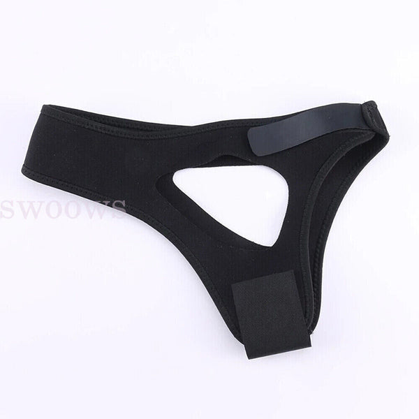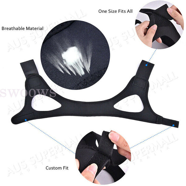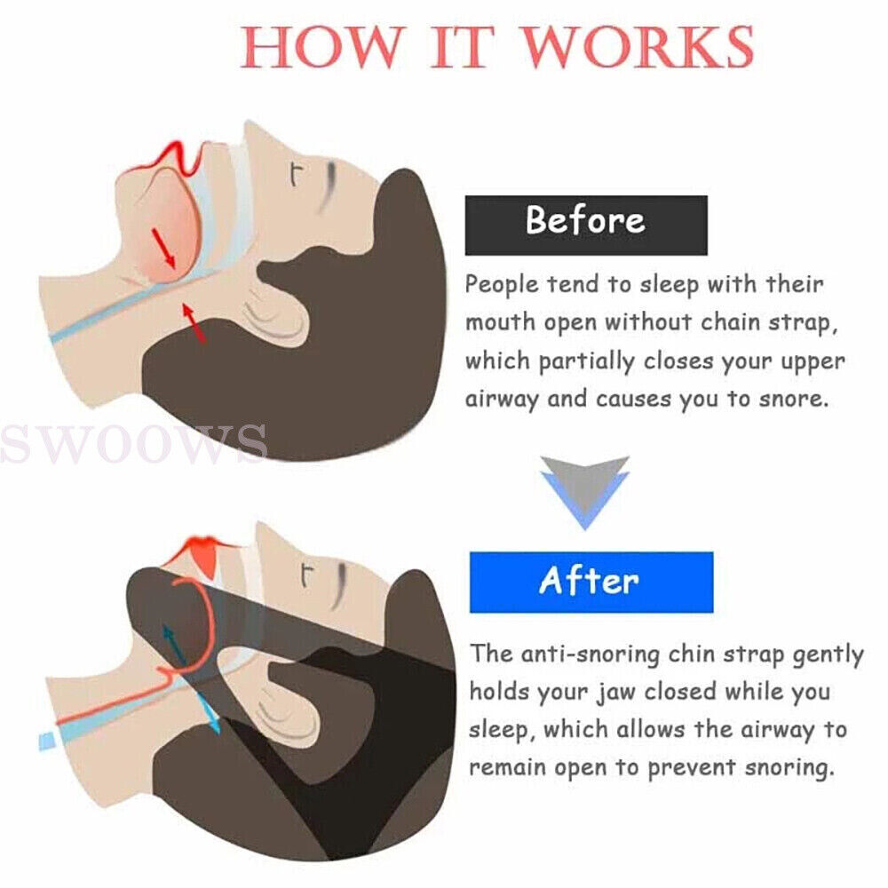 Descriptions - Brand New and High Quality - Material: Neoprene - Color: Black - Size: as per picture shows - With Double Strap System to reduce slippage during sleep - Unisex - Fit both men and women - One Size Fits All - Comfortable and easy to wear - Latex Free, non-allergic and machine washable - Why Double Strap? This will reduce slippage during sleep so strap stays on through out the night. - It can make your jaw comfortably closed while you sleep, hence reduce snoring.