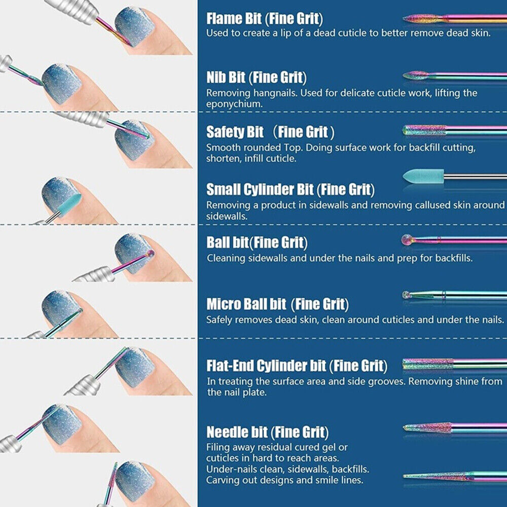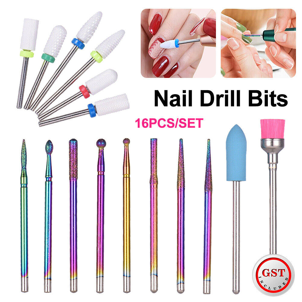 Totally 16PCS different nail drill bits fit most electric nail drill machines that use 3/32" drill bits. Various shapes and sizes meet different kinds of needs.