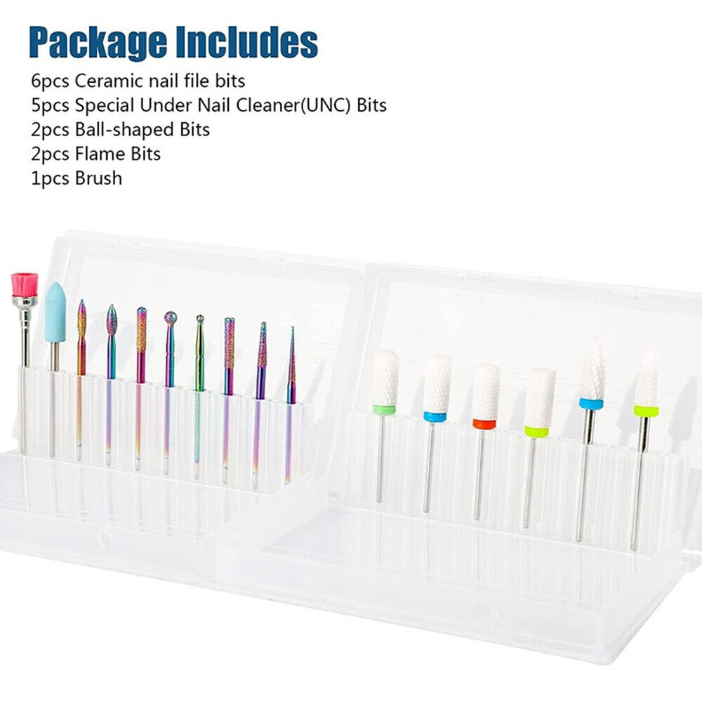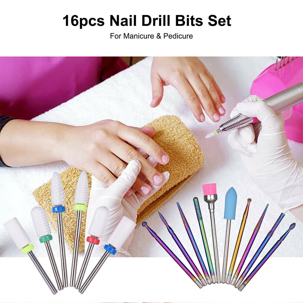 16pcs Ceramic Nail Drill Bits Set File Acrylic Manicure Pedicure Nail Tools