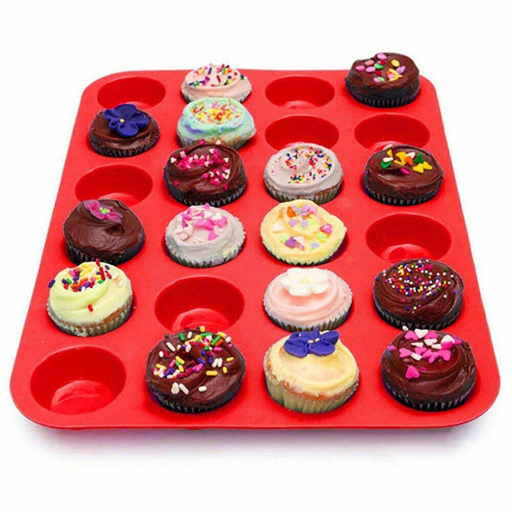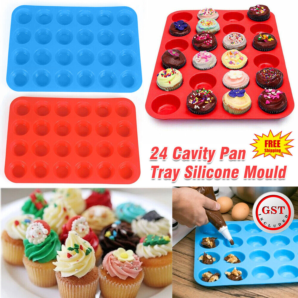 1-2x Pan Tray Silicone Mould 24 Cavity Mini Cupcake Cookie Baking Mold MuffinCup