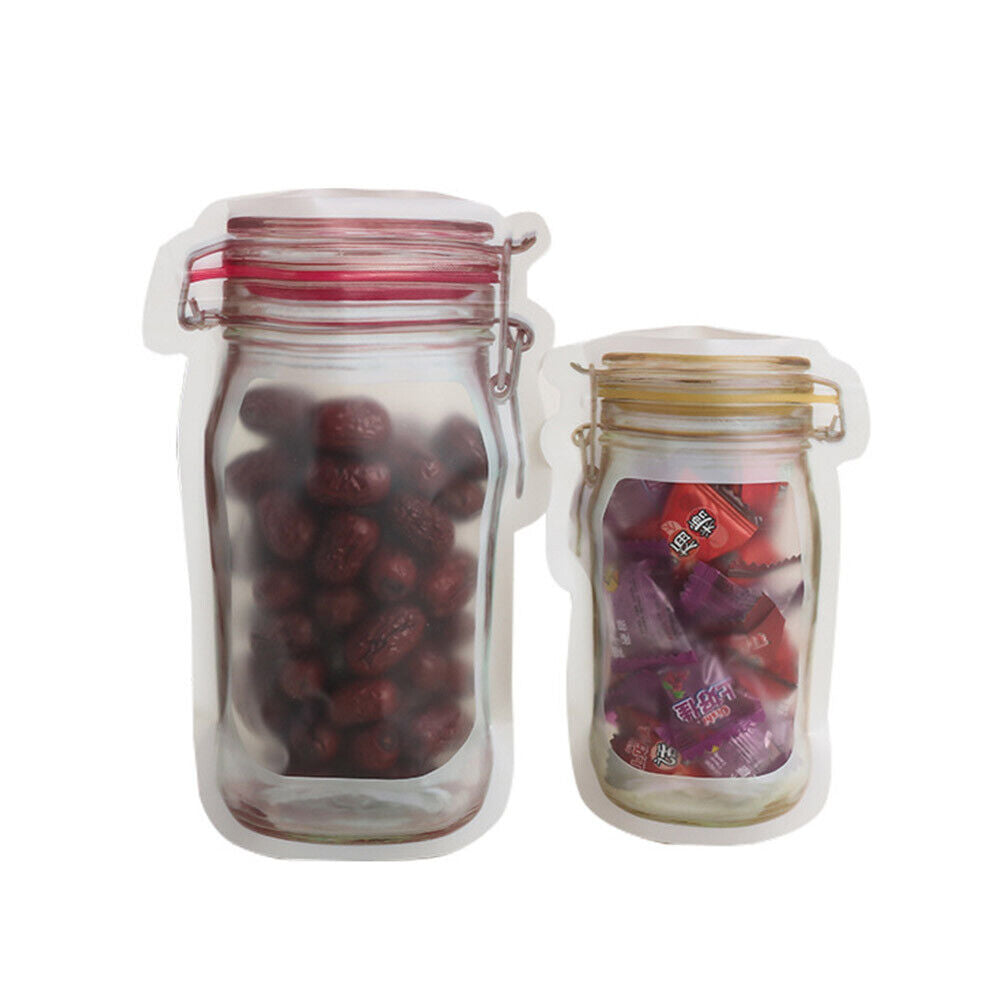 10PCS Mason Jar Reusable Zip Bag Food Storage Stand Up Zipper Pouch PE