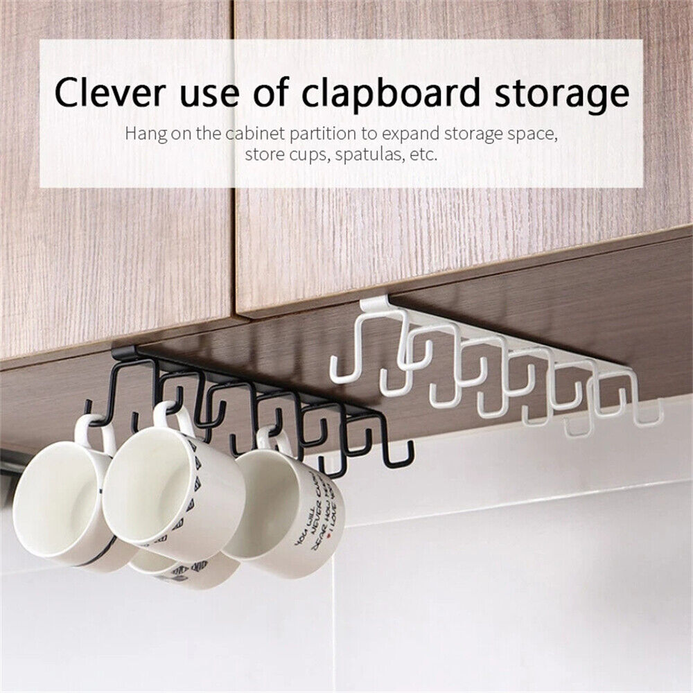 Double Hook Under Shelf Kitchen Cabinet Hanger Organiser Mug Cup Rack Holder