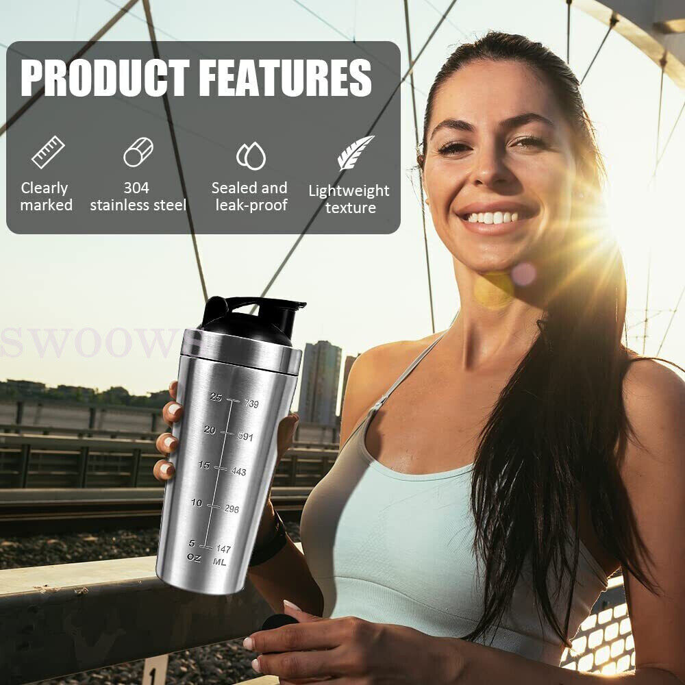 1.[304 Stainless Steel] The shaker bottle is made of premium 304 stainless steel material, which is sturdy and easy to clean. This drink cup is safe, odorless and safe to use, BPA free.