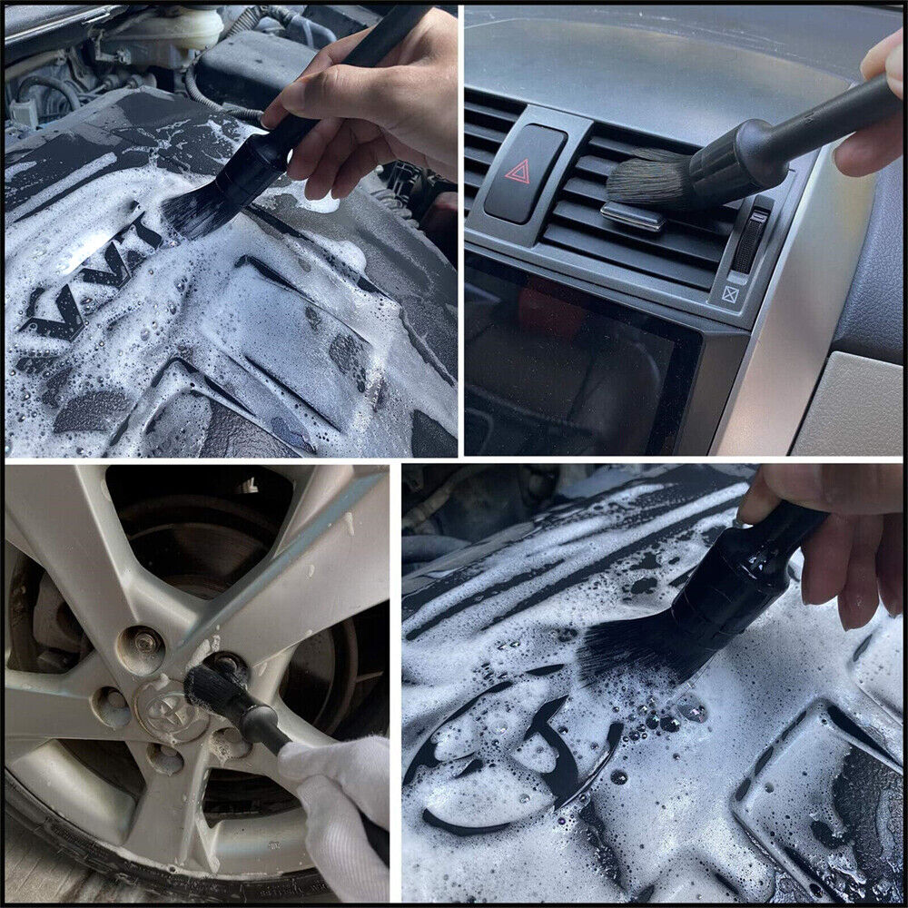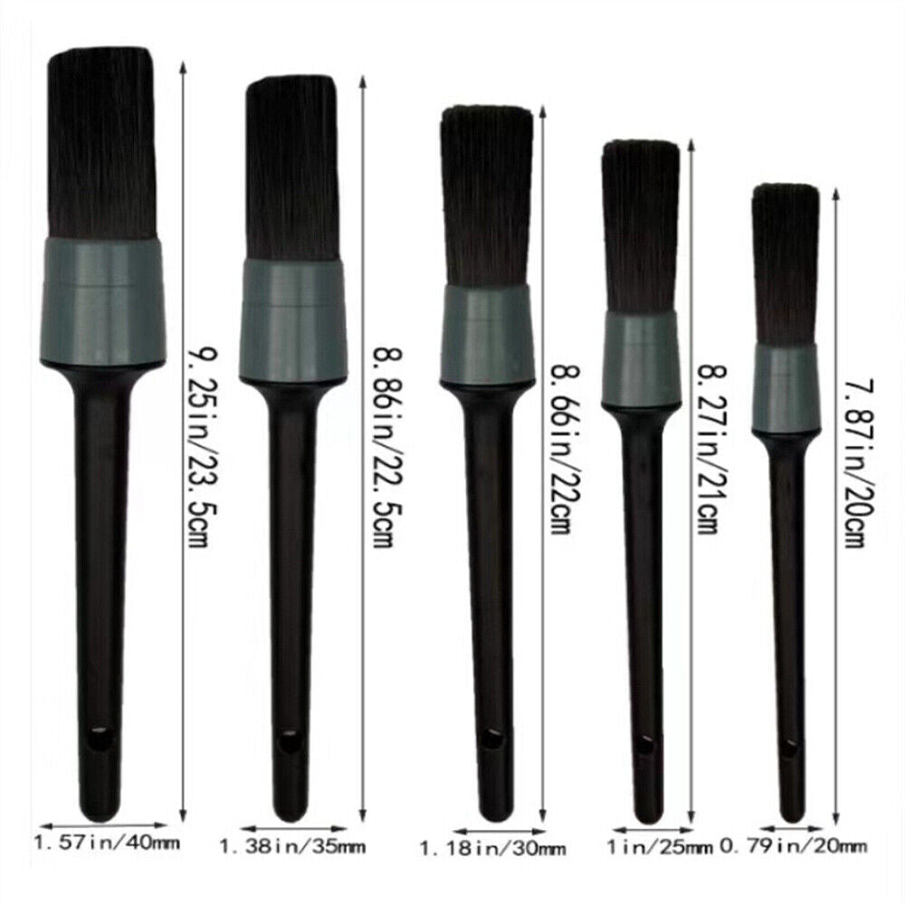 5Pcs Car Detailing Brush: 5Pcs different brush sizes, you can choose any one to suit your needs, enough length for easily exploring and reaching into the lug nuts, narrow or tight space.Great for both interior and exterior detailing.