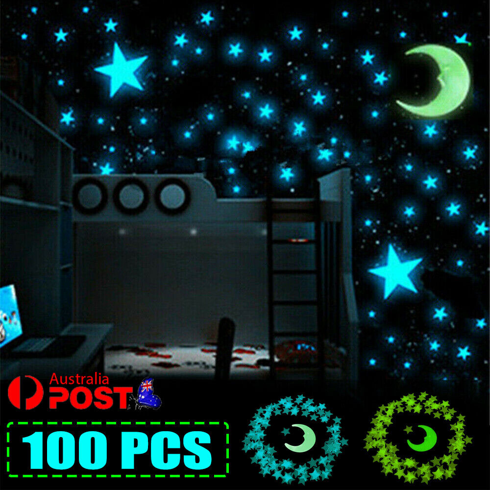 100pieces Glow In The Dark Stars Night Light Wall Stickers Decal Kids Room Home