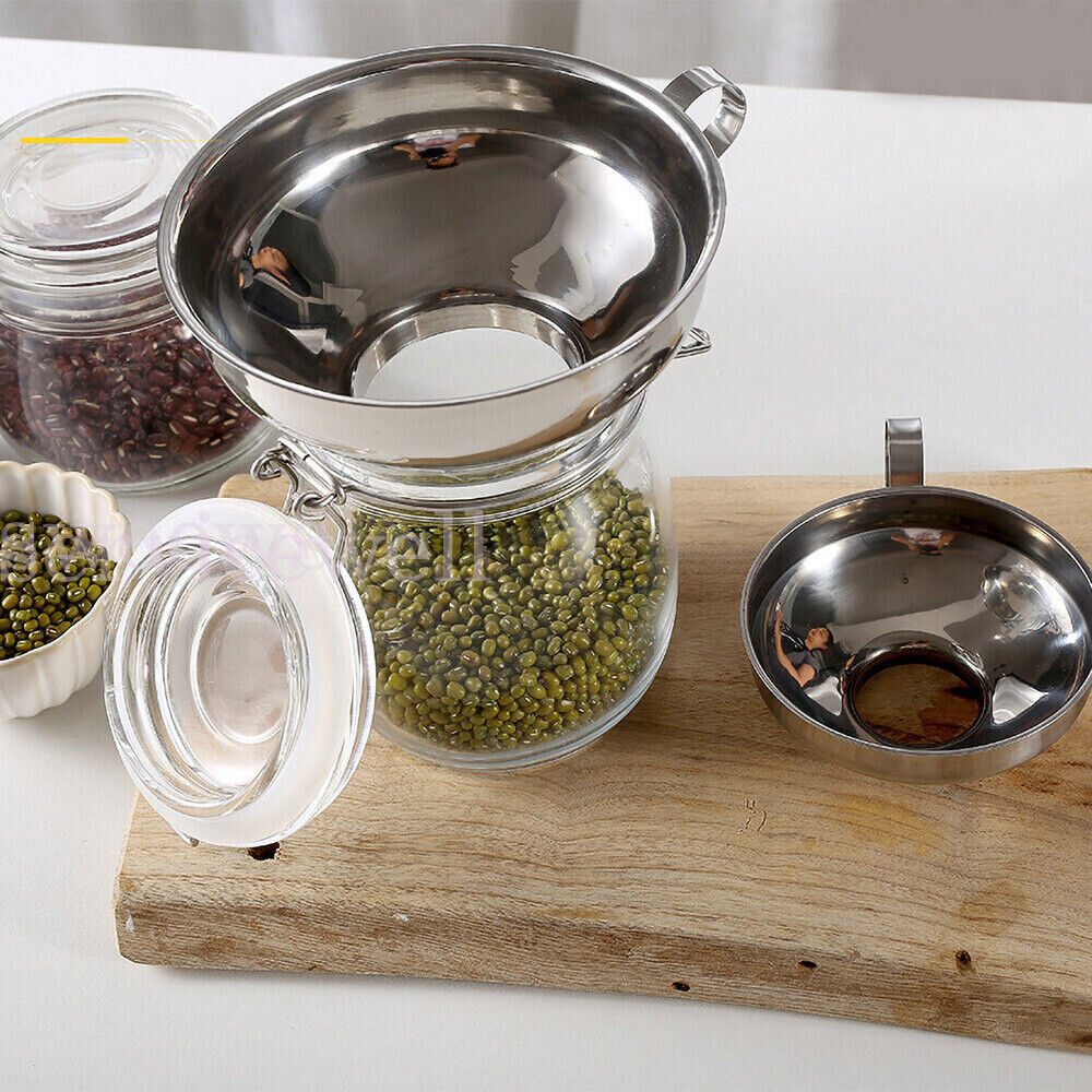 Multifunctional: the stainless steel funnel can transfer both liquids and solids between containers. It's wide mouth is large enough for sugar, flour, and grains like rice to flow through.