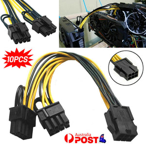 10 Pack PCI-E 6 Pin to dual 8 Pin (6+2)Power Splitter Cable for PCIE PCI Express
