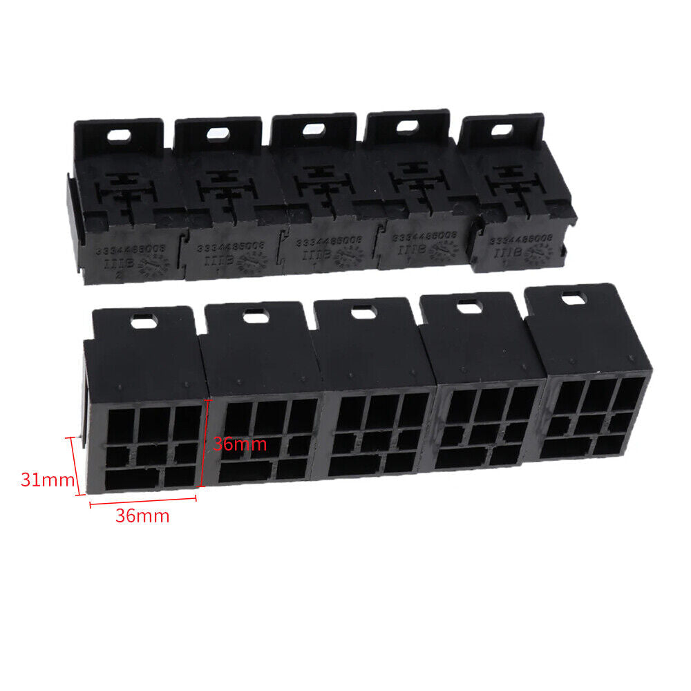 Descriptions: - Brand New & High Quality - Size: 36*36*31mm (approx.) - Terminal size: 6.3mm (approx.) - The relay socket holder is made of PA66, which is very durable, and not easy to deform, long lasting. - Relay sockets are used in many automotive electronic applications and can turn on/off almost any device. Wide use: The holder is perfect for car alarm clock, remote start, headlamp, pops-up door, release strobe lamp, fog light, stereo, fan. Easy to use: The relay socket holder comes with terminals, which are very convenient and simple to operate. Replacement parts: The relay socket holder can be used for taking place the old and damaged accessories.