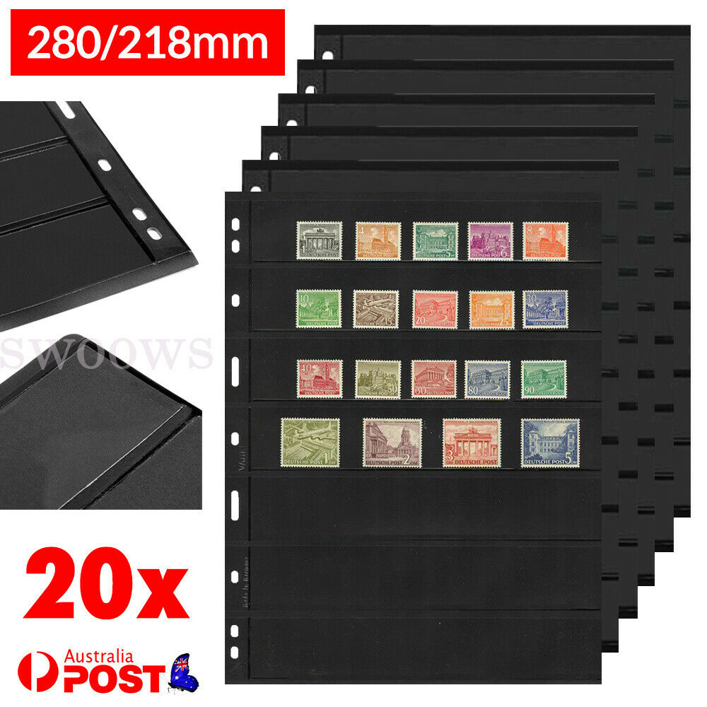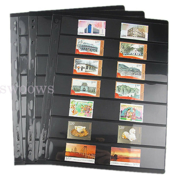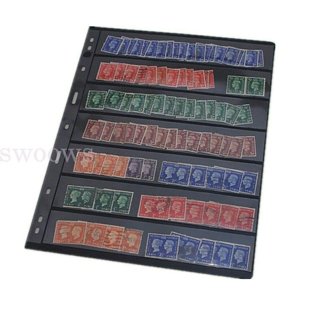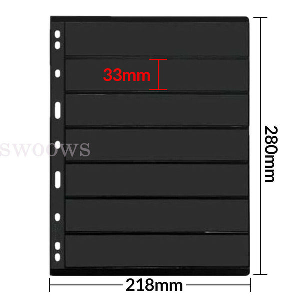 20~100 Sheets of Stamp Stock Black & Double Sided Page (7 Strips) 9 Binder Holes
