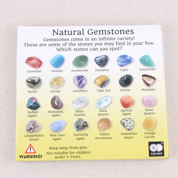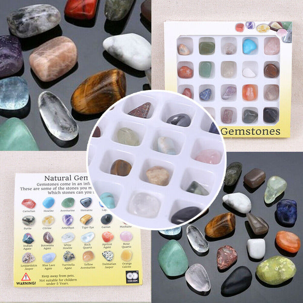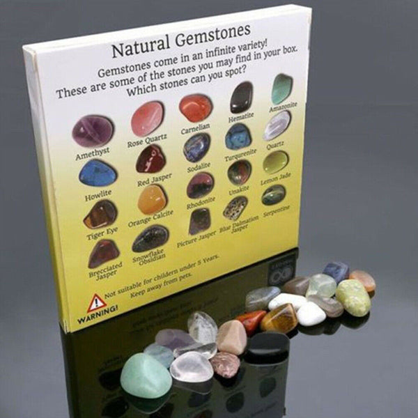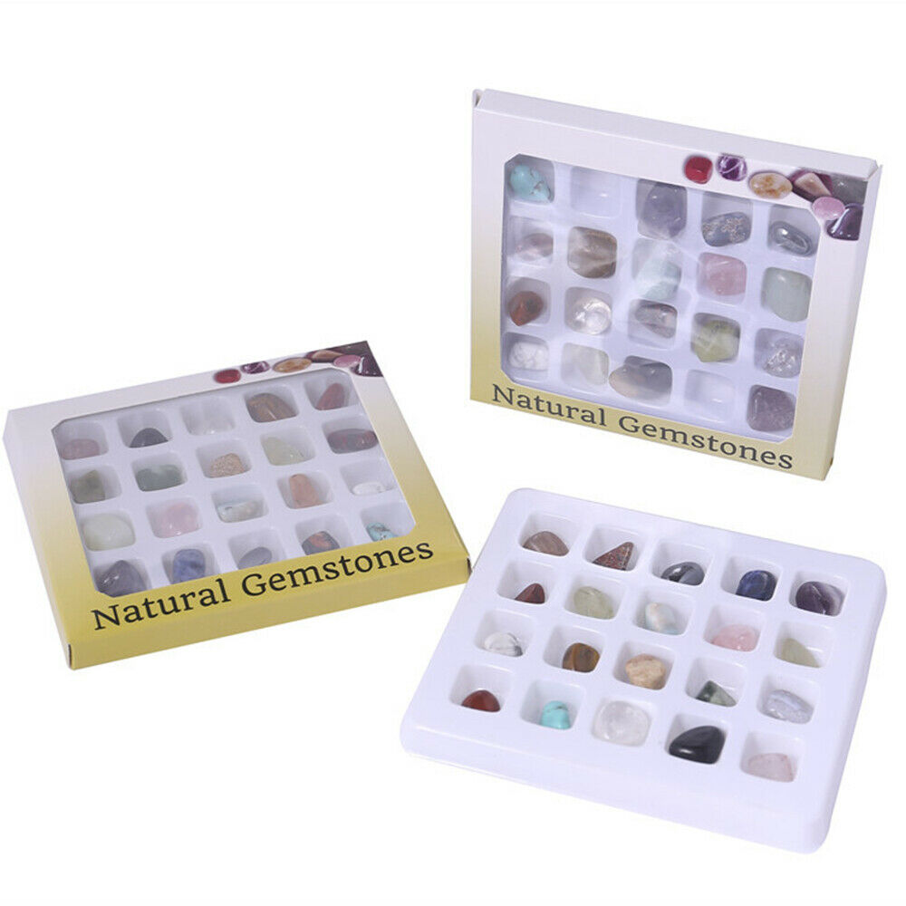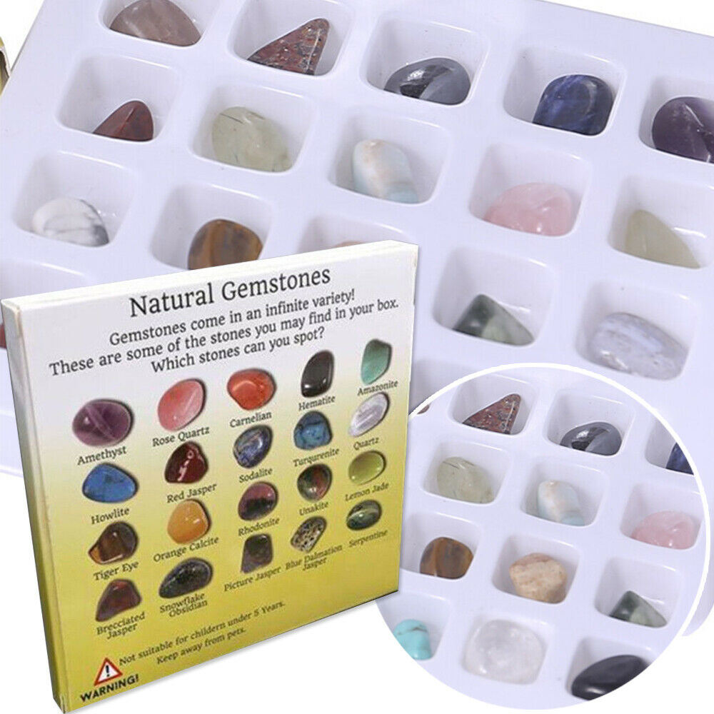 20pcs Crystal Gemstone Polished Healing Chakra Stone Collection Display Set AU