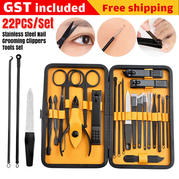 22PCS Manicure Set Pedicure Kit Set Stainless Steel Nail Grooming Clippers Tools