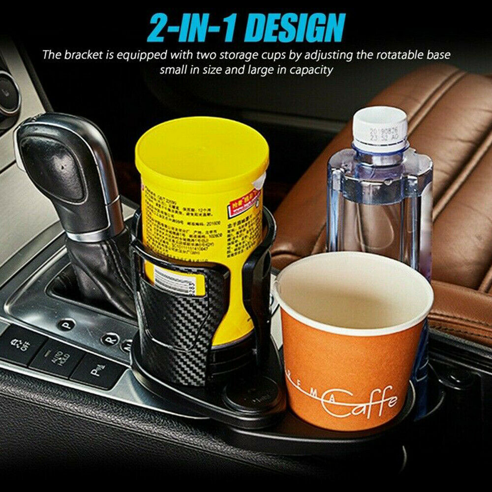 2-IN-1 DESIGN: The bracket is equipped with two storage cups by adjusting the rotatable base, small in size and large in capacity, for the purpose of saving car space, and can hold two drinks at the same time.