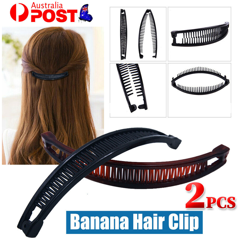 2pcs Black & Brown Barley Twist Banana Hair Clip Comb Clamp Grip Slide Women
