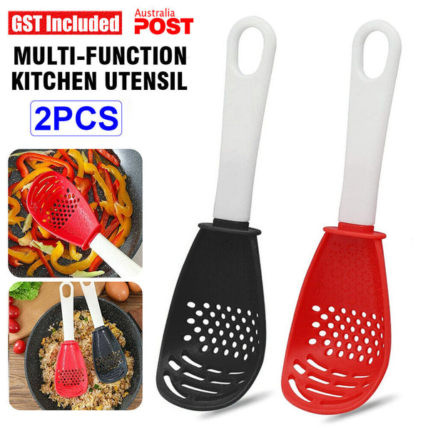2pcs Multi-function Kitchen Utensil Spatula Spoon Cooking Tool Potato Masher AU