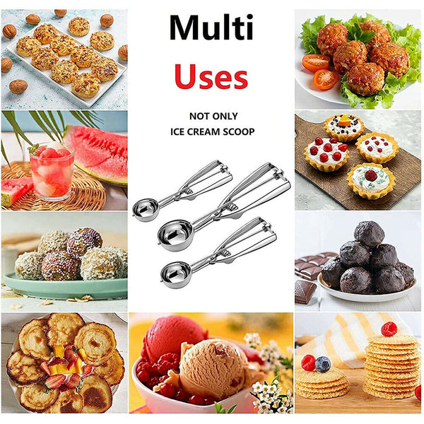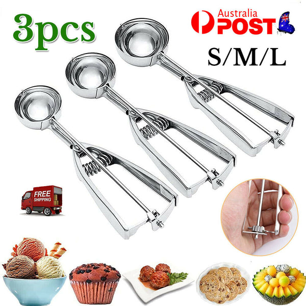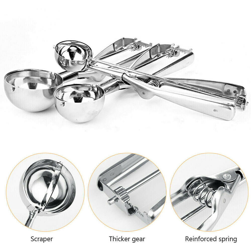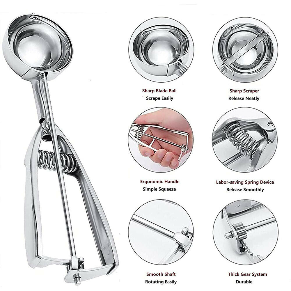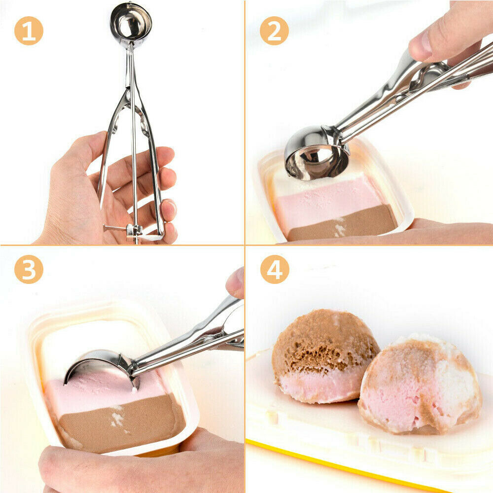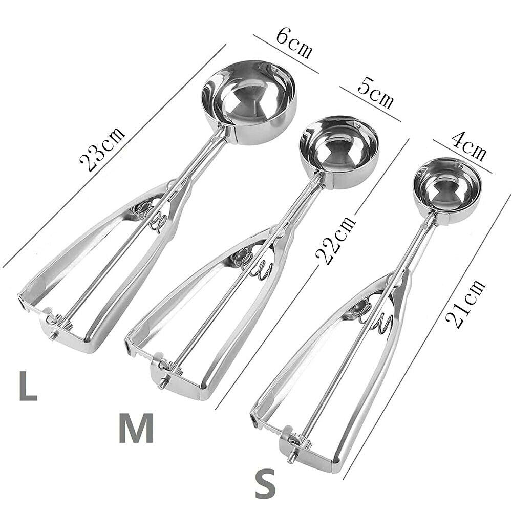 Specification: Material: Stainless Steel. Color: Silver 3 Size available: Approx Grip: 4/ 5 /6 cm Scoop dia. 4/ 5 /6cm Length approx: 21-23cm Simple and easy to use and clean. Suitable for use with ice creams and mashed potatoes.