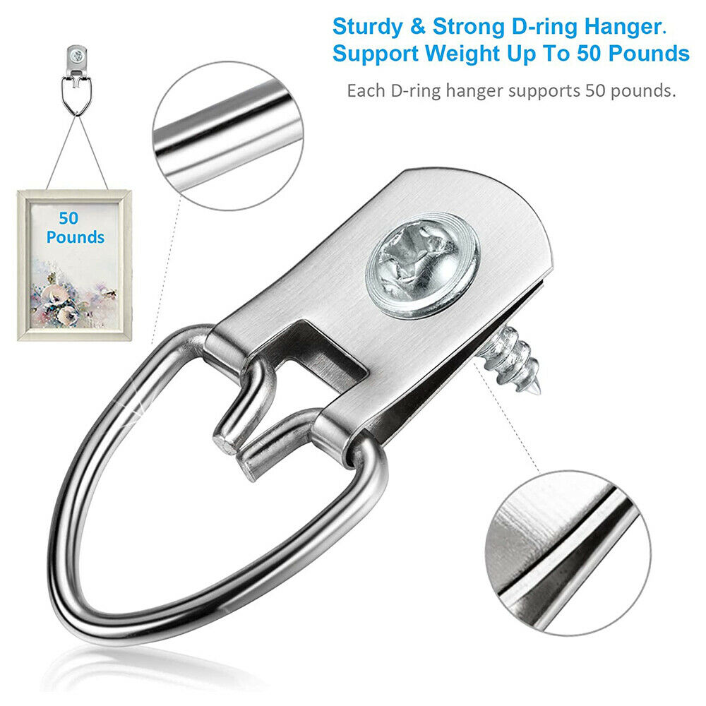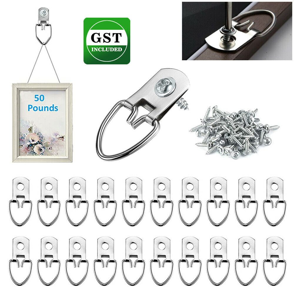 50X D-Ring Painting Picture Frame Wall Mirror Hanger Hanging Hooks + Screws AU