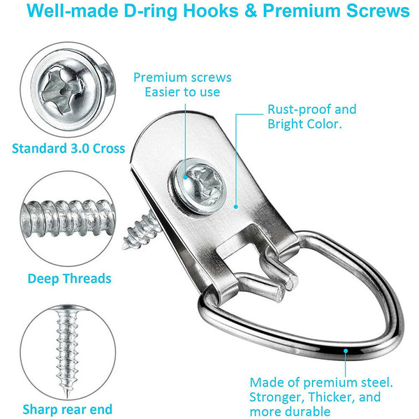 - Premium quality Medium D-ring shape hanger comes with screws.