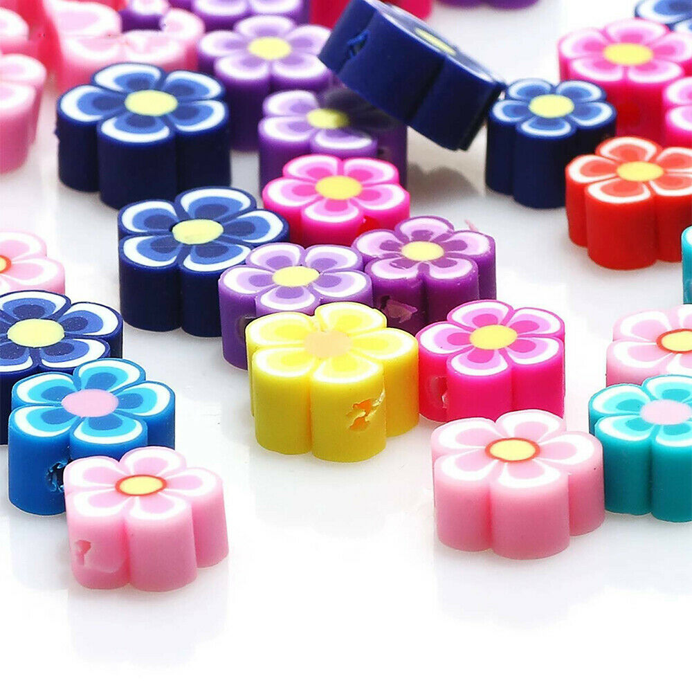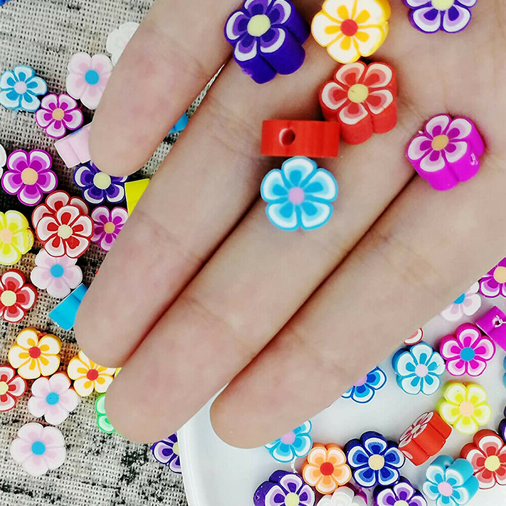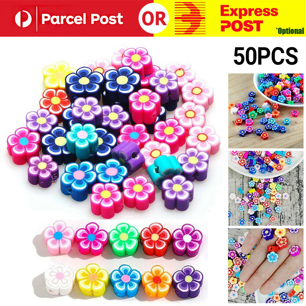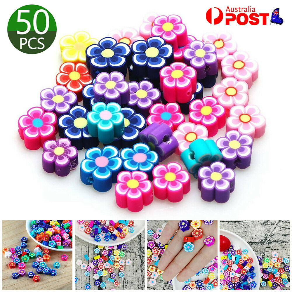 50x Flower Floral Clay Beads Mixed Colour Polymer Handmade DIY Jewellery Making