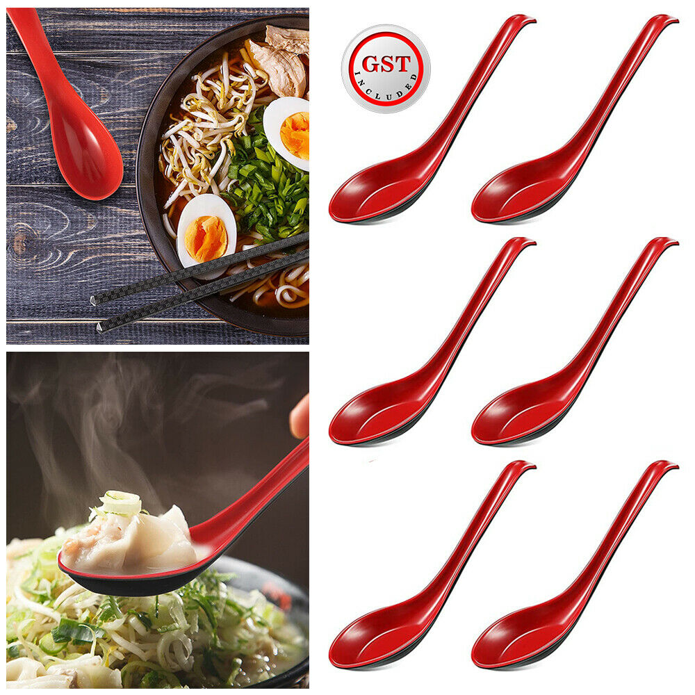 6X Soup Ramen Spoons Asian Chinese Japanese Utensils Long Handle Hook Flatware