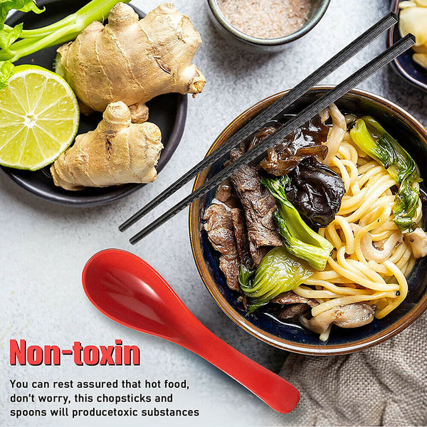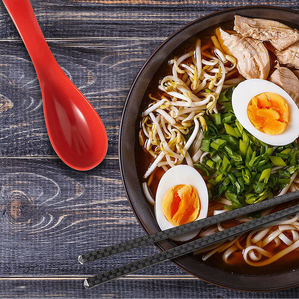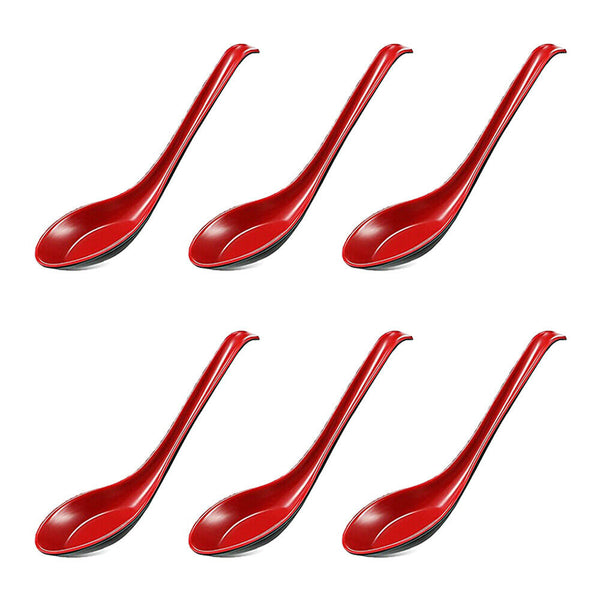 Double-color Design: Modern design with a red front side and black back side, enjoy won ton soup or miso soup with this soup spoons.