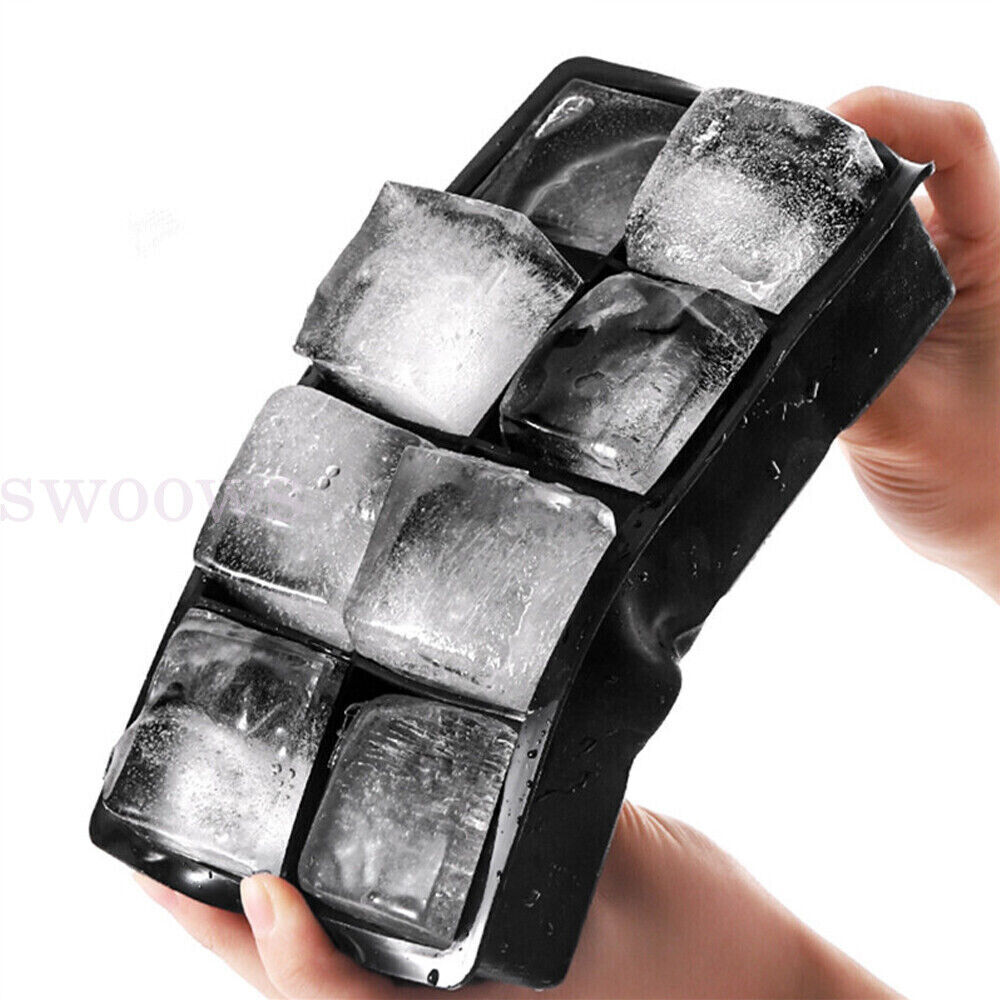 8 Grids Whiskey Silicone Maker Ice Cube Tray Mould Large Mold Giant Square Black