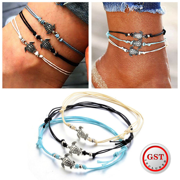 Bohemian Adjustable Rope Sea Turtle Anklet Beach Chain Foot Jewelry AU Stock New