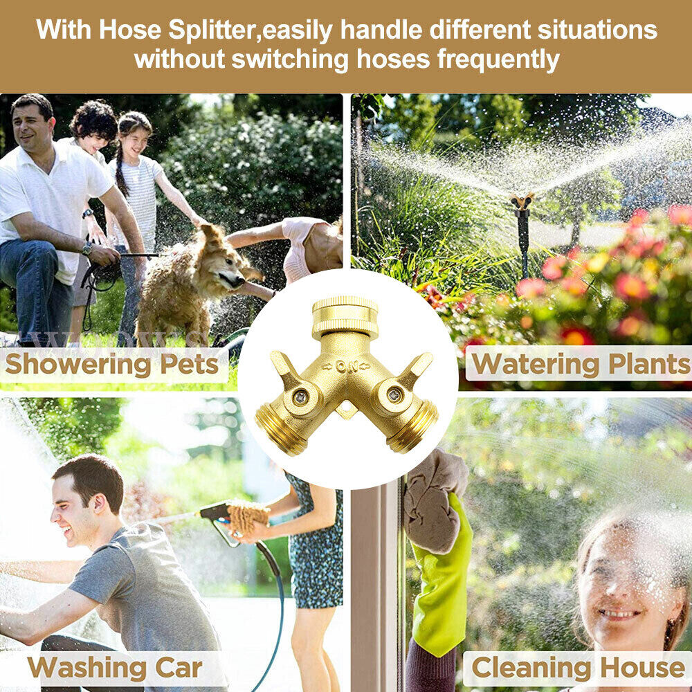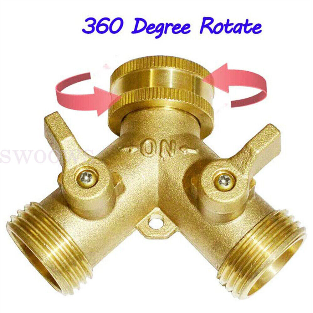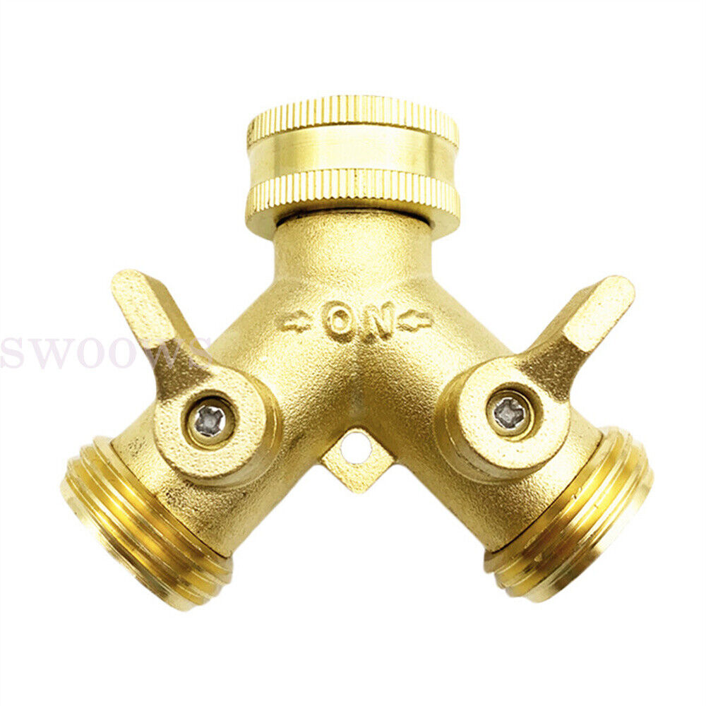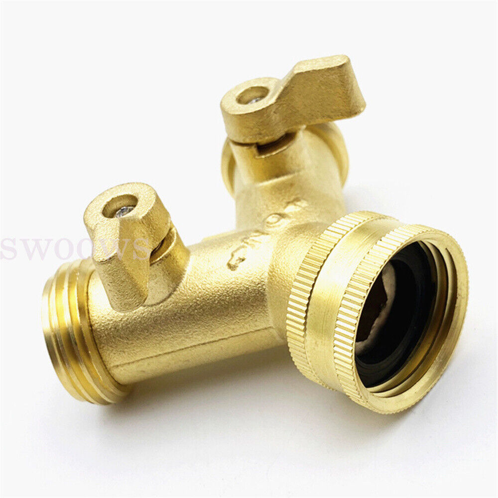 Features: Garden Hose Y-Valve Connectors: This two way water valve-changed to brass handle Solid Brass: This hose splitter is heavy duty, stronger body and connector. Leak Proof: Hose Y-valve is water proof test before shipment. Easy to Use: Hose Y-valve improved wider handle easy to turn on/off Standard Dimension: This water splitter is 3/4 inch garden hose connector, make sure your matched parts is garden hose thread