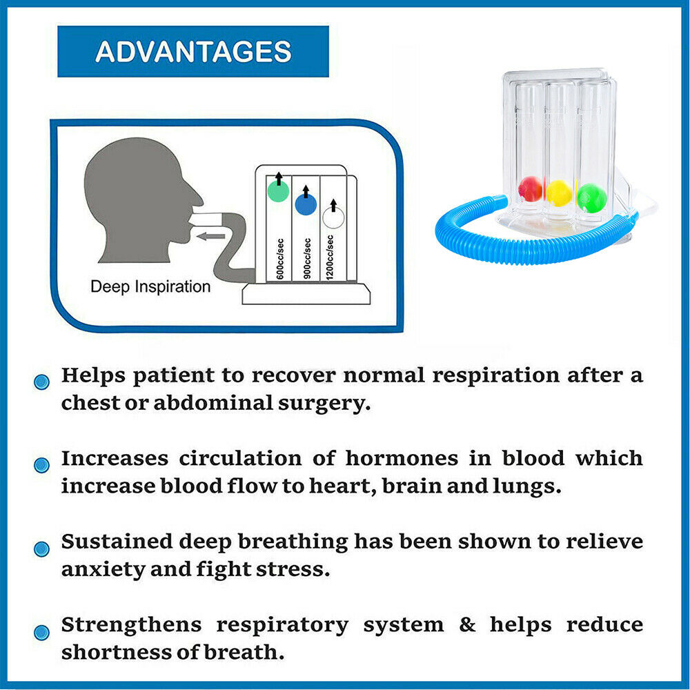 Deep Breathing Lung Exerciser TRI-BALL Meter Spirometer Trainer Safe Breath NEW
