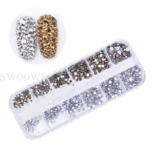 Deluxe Flatback Rhinestones w/ Box Clear AB Blue Violet Gold Nail Art Gems Decal
