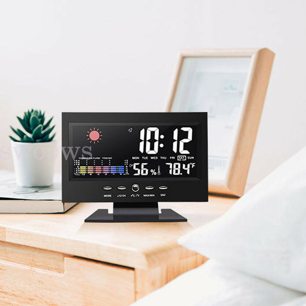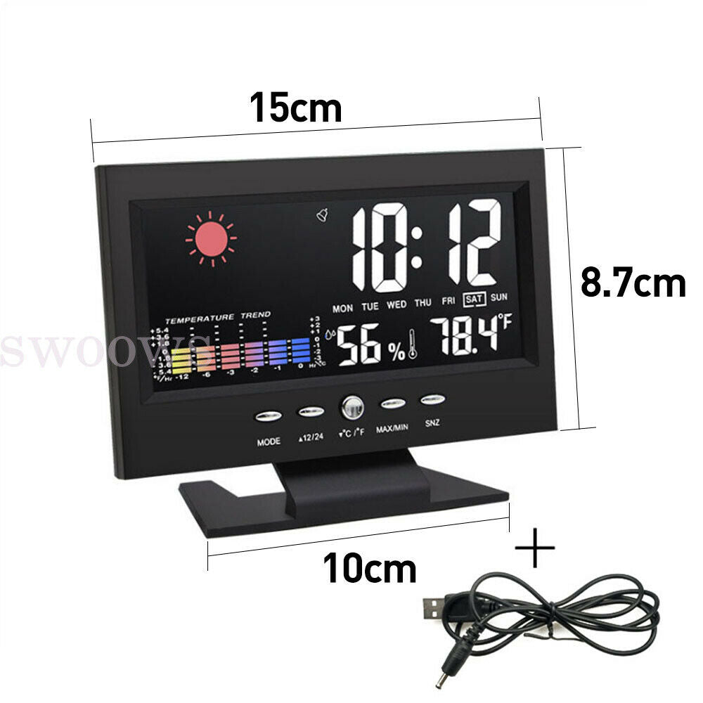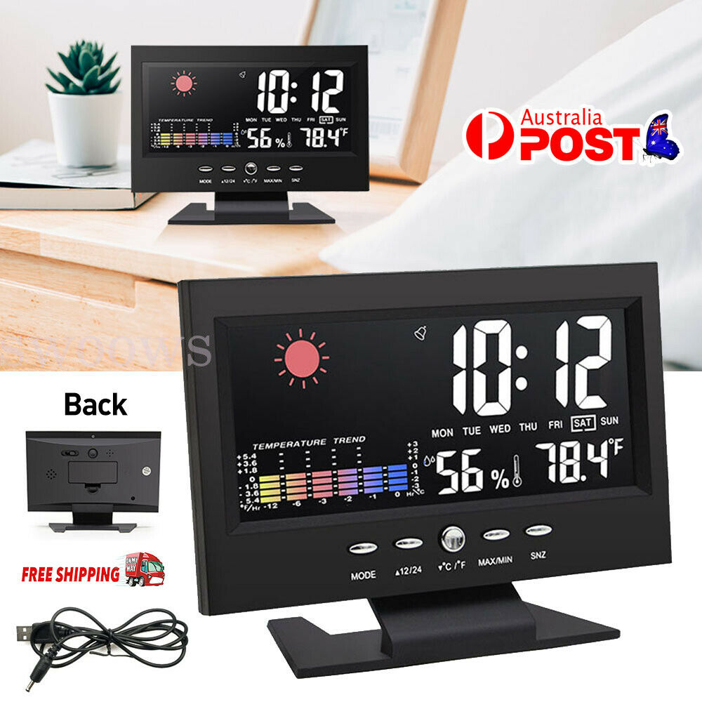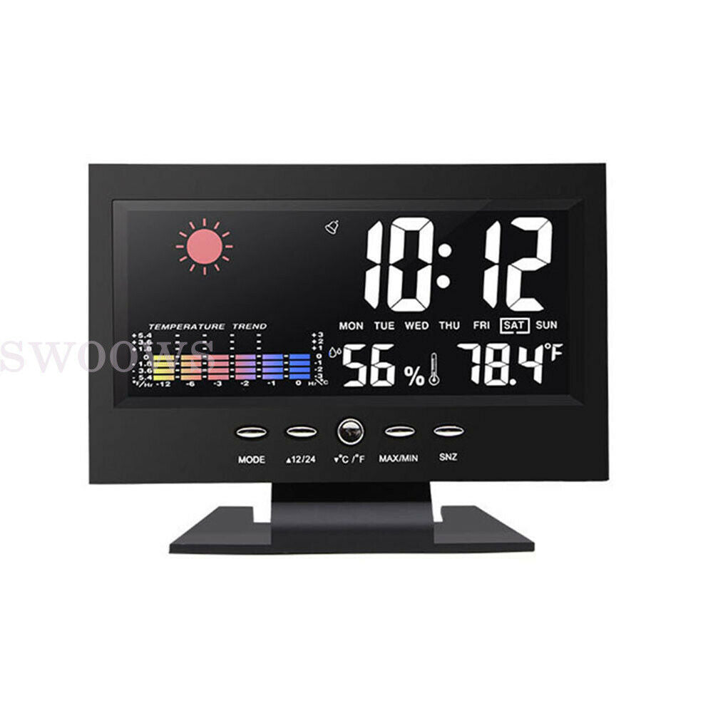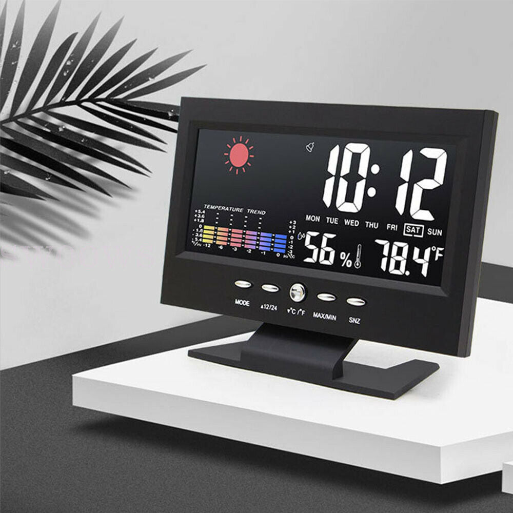 Digital Led Alarm Clock LCD Display Time Temperature Weather Calendar Date 2021
