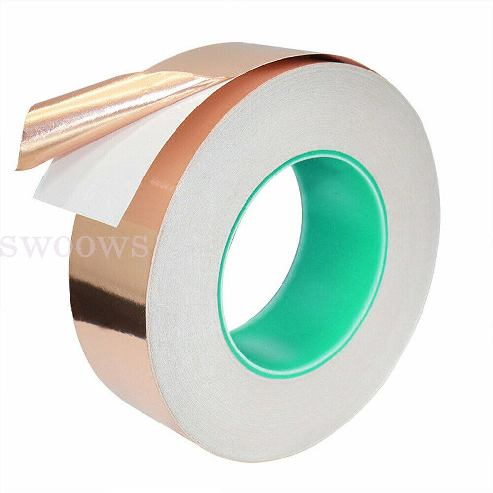 Description: - It is Adhesive Copper Foil Tape. - Low surface oxygen content, can adhere to materials like metal and insulator. - Wide applicable temperature range. - Fits for electronic components, the back of guitar pickguards and cavities, Eliminate Electrical noise and humming, repair on printed circuit boards, Arts and Crafts.