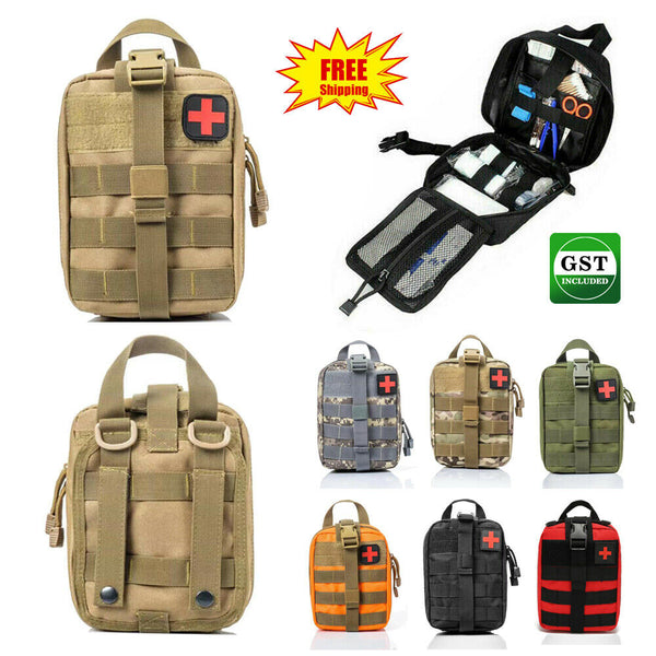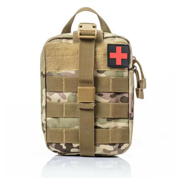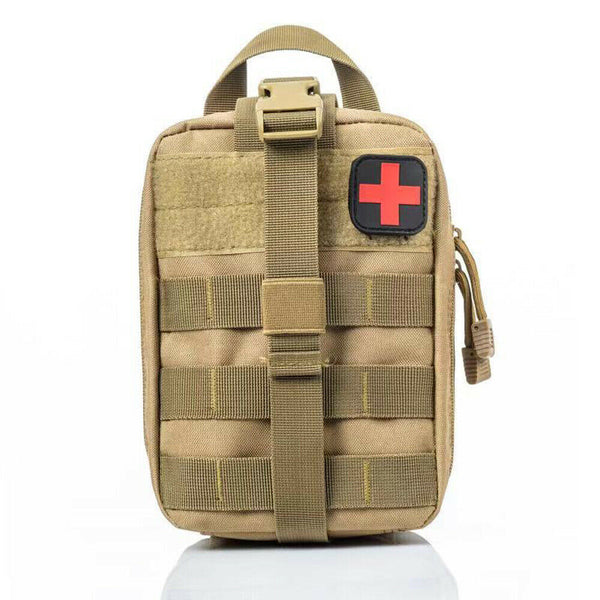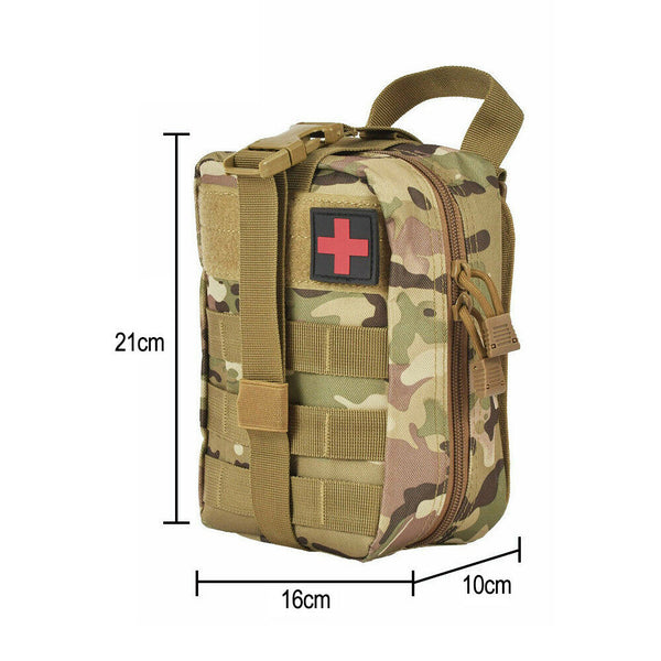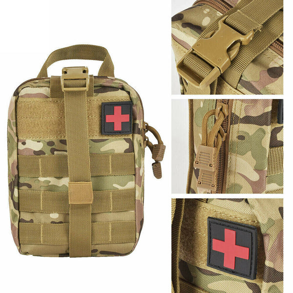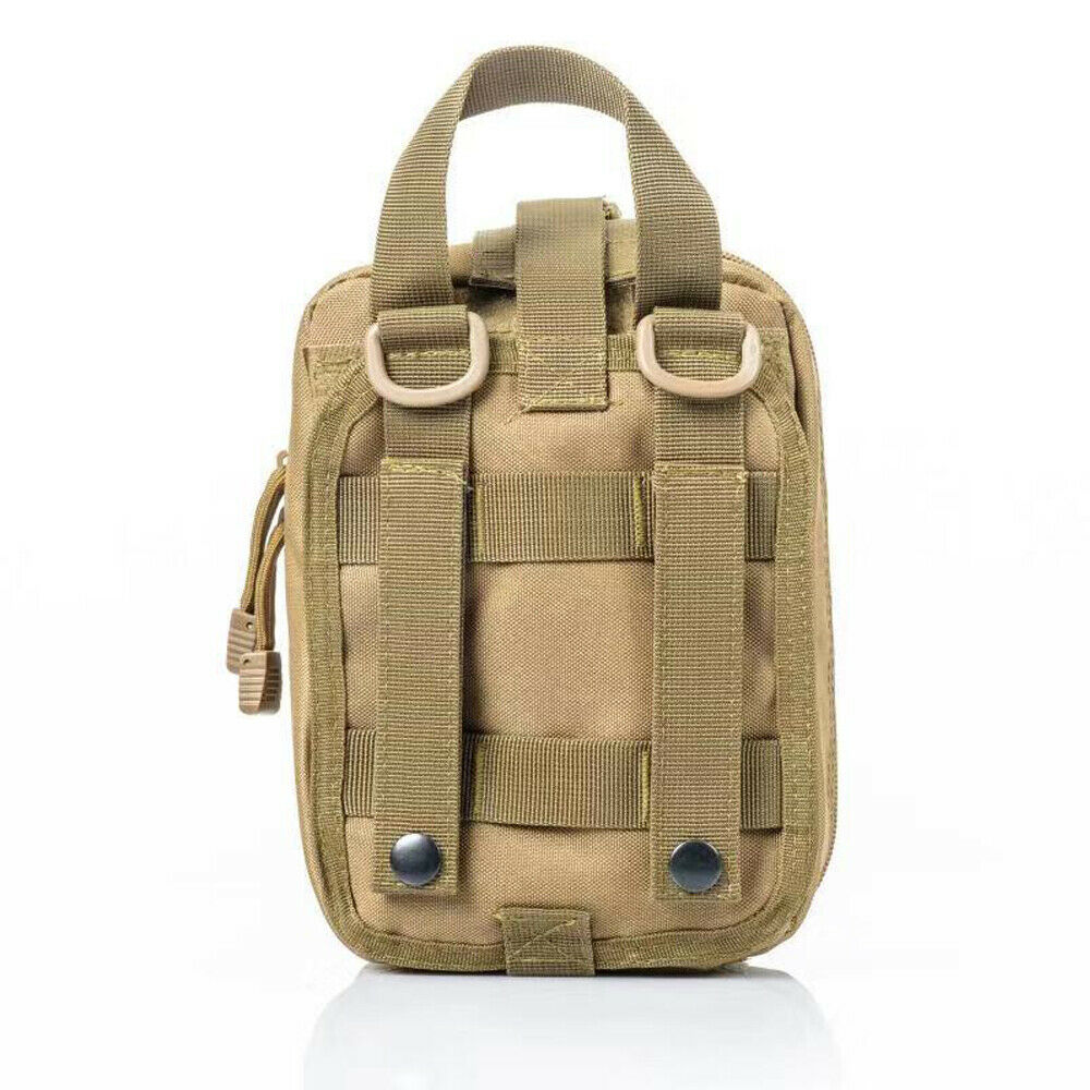 Description 1. Material:anti-abrasion Nylon. 2. High qualitly : Durable straps with strong snaps allows you to attach this medical pouch to any compatible gear( to be worn on belt, vest or pack). 3. MULTI PURPOSE: Water resistant nylon case and it protect your medical supplies.First aid pouch has Multiple pockets and elastic holders for storage.It is very easy to put goods in and take out. Perfect for carrying medical supplies. 4. FLEXIBILITY: Our original D ring design on the back can be used to give this Individual first-aid kit bag attachment flexibility. Use them to attach a shoulder strap, attach the pouch in your car or truck, and is perfect for a JEEP rollbar and other recreational vehicles. 5 .EASY TO USE: The medical pouch has Double zipper, Full zipper clamshell openingand. it will open all the way flat so it won't snap shut when you are trying to access medical supplies.