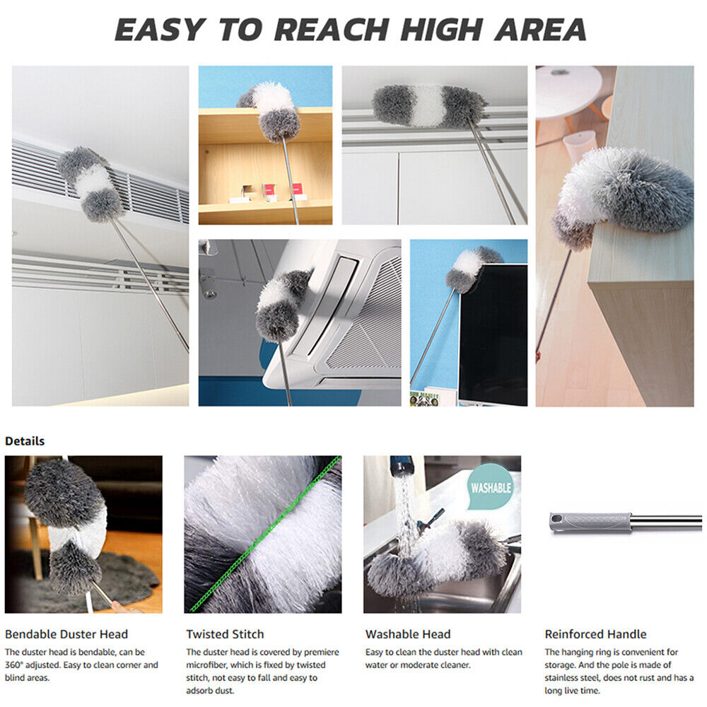 - [Bendable head] The bendable microfiber duster head is more convenient than ordinary dusters. It can be adjusted to any angle, that makes it easier to clean the dust hiding in high corner.