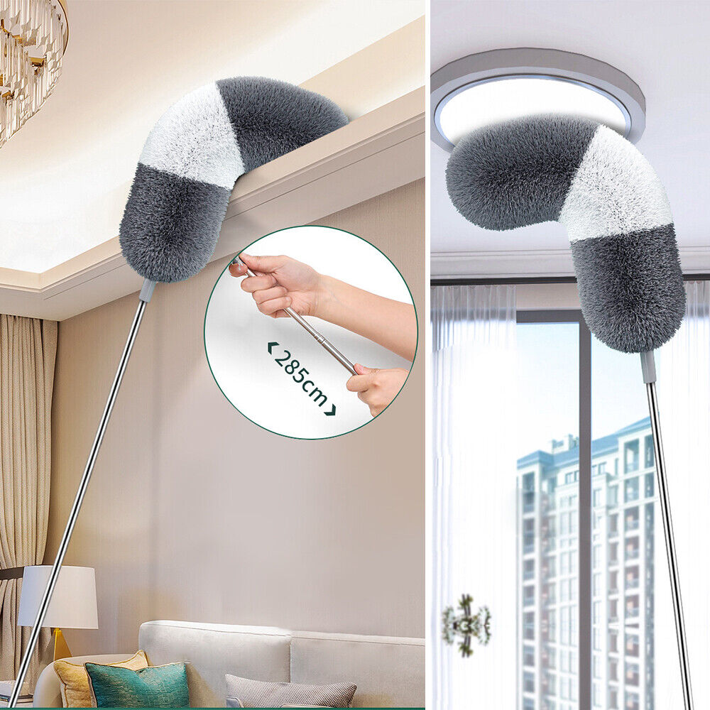 - [Extra long pole] The stainless steel pole can be extended up to 285cm , which makes this duster being able to easily clean ceilings, ceiling fans, lamps, cobwebs, etc.