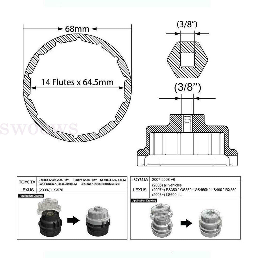 Oil Filter Socket Removal Wrench Tool For Toyota Landcruiser VDJ 200 1VDFTV
