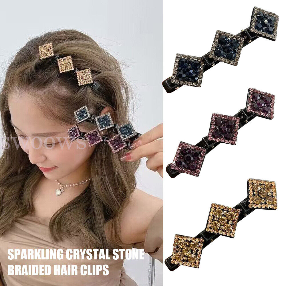 RHINESTONE HAIR CLIPS FOR WOMEN:Fashion double layer band twist plait headband hairpin hair claw clips, allow you to change your hairstyle whenever you want and bangs can look great.
