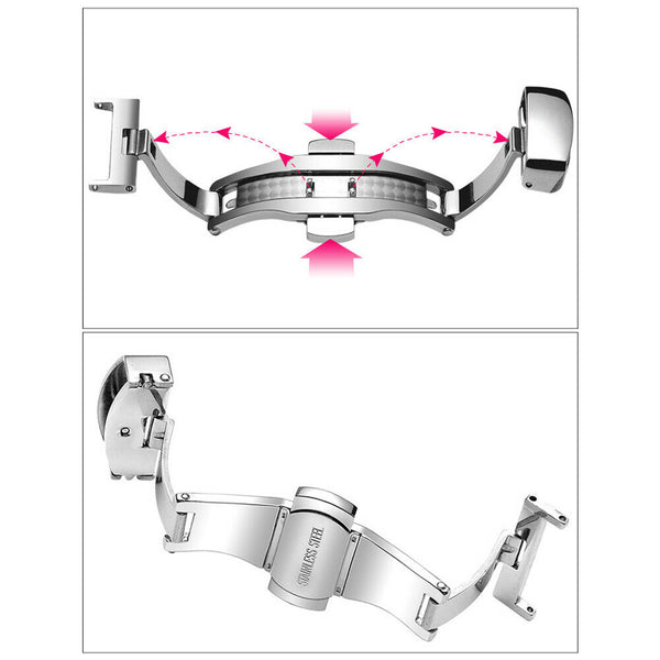 Stainless Steel Flip Lock Butterfly Deployment Clasp Watch Deployant Buckle Cool